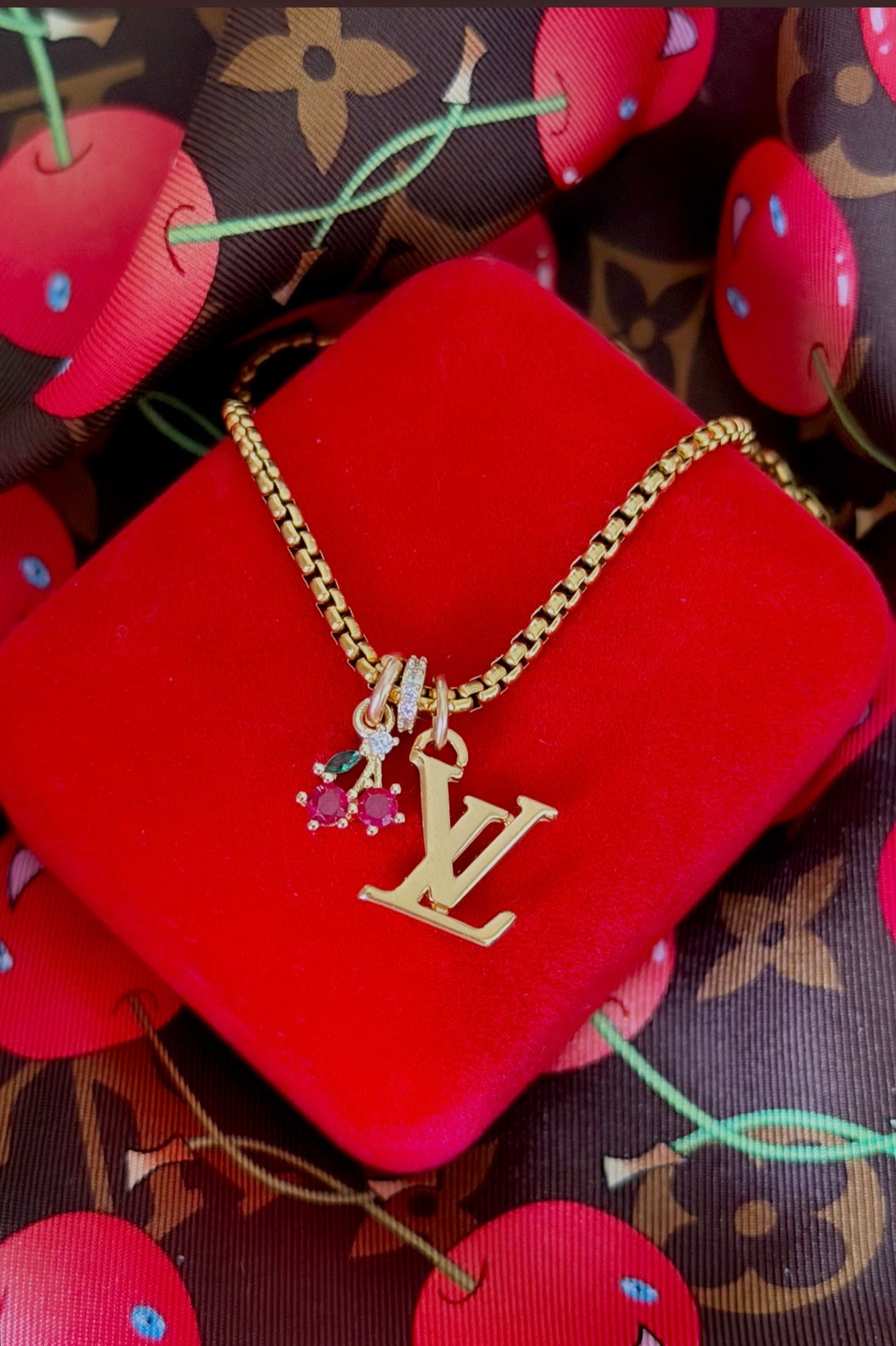 Cherry Charm & Spacer are Removable! LV Logo charm can be worn with or without them!